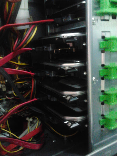 - Contohnya kami perlukan HDD space yang besar namun budget tidak mencukupi untuk membeli HDD / file server / sewa HDD space dll. Jadi apa yang yang termampu hanyalah menggunakan apa yang ada dalam jabatan kami. Kami gunakan 6 buah HDD 500GB, dan dengan RAID 5, kami boleh mencapai saiz HDD sehingga 2.5 TB. Cukuplah untuk sistem yang kami bina ni dan mungkin mampu bertahan 2-3 tahun lagi sebelum penuh.. InsyaAllah.